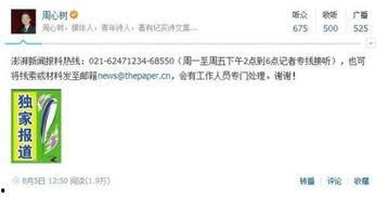 你有没有想过,当你看到一些惊天动地的事情,或者身边发生了一些令人震惊的事件,你心里是不是也痒痒的,想要把这些信息告诉更多的人呢?没错,就是那种“我知道一个秘密,我要告诉全世界”的感觉!今天,就让我来告诉你,如何联系澎湃新闻,让你的爆料成为焦点!
